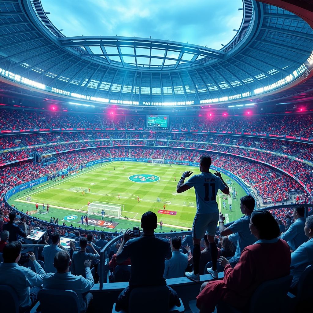 虚拟现实(VR)和增强现实(AR)技术的应用,为观众带来全沉浸式体验。无论身在何处,粉丝都可以通过VR设备“置身”赛场中央,感受现场的激烈氛围。这不仅拓宽了观众群体,也为足球产业带来巨大商业潜力。比如,虚拟看台、虚拟互动场景、虚拟教练指导等创新方式,吸引年轻一代加入到足球热潮中。